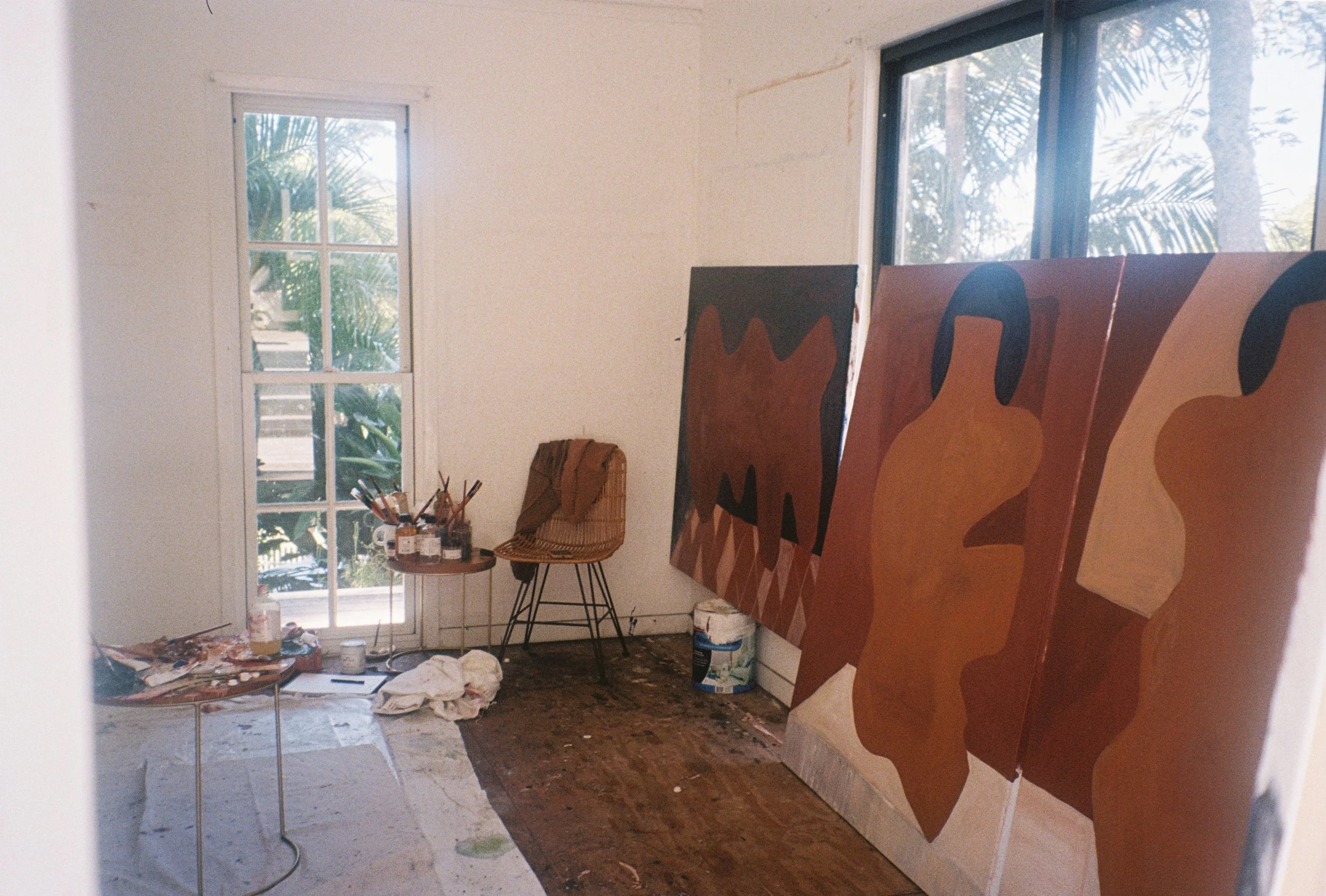 After finishing a printmaking major at art school in Lismore in 2012. Jordana now works and lives in the elemental north east coast of NSW (Byron Bay). Jordana’s works naturally take on the form of abstraction as she uses predominantly oils to create marks that best explore notions of landscape, shape, figure, emotion and colour.